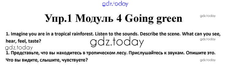 На страницах сайта gdz.today вы найдете учебный и вспомогательный материал, направленный на улучшения знаний школьной программы. ГДЗ - онлайн мир знаний Going green Решение к Module 4 1 Учебнику по Английскому языку для 10 класса Афанасьева, Дули Просвещение Spotlight 2015