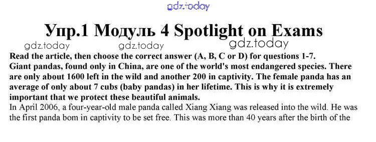 На страницах сайта gdz.today вы найдете учебный и вспомогательный материал, направленный на улучшения знаний школьной программы. ГДЗ - онлайн мир знаний Spotlight on Exams Решение к Module 4 1 Учебнику по Английскому языку для 10 класса Афанасьева, Дули Просвещение Spotlight 2015