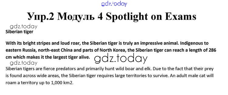 На страницах сайта gdz.today вы найдете учебный и вспомогательный материал, направленный на улучшения знаний школьной программы. ГДЗ - онлайн мир знаний Spotlight on Exams Решение к Module 4 2 Учебнику по Английскому языку для 10 класса Афанасьева, Дули Просвещение Spotlight 2015