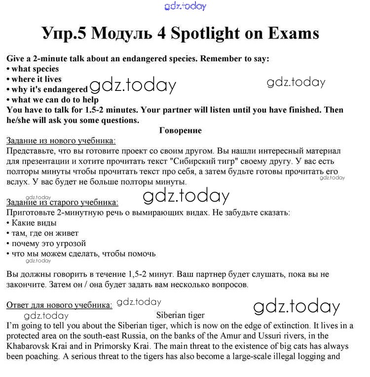 На страницах сайта gdz.today вы найдете учебный и вспомогательный материал, направленный на улучшения знаний школьной программы. ГДЗ - онлайн мир знаний Spotlight on Exams Решение к Module 4 5 Учебнику по Английскому языку для 10 класса Афанасьева, Дули Просвещение Spotlight 2015