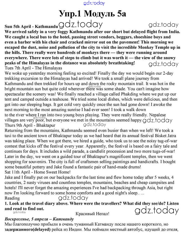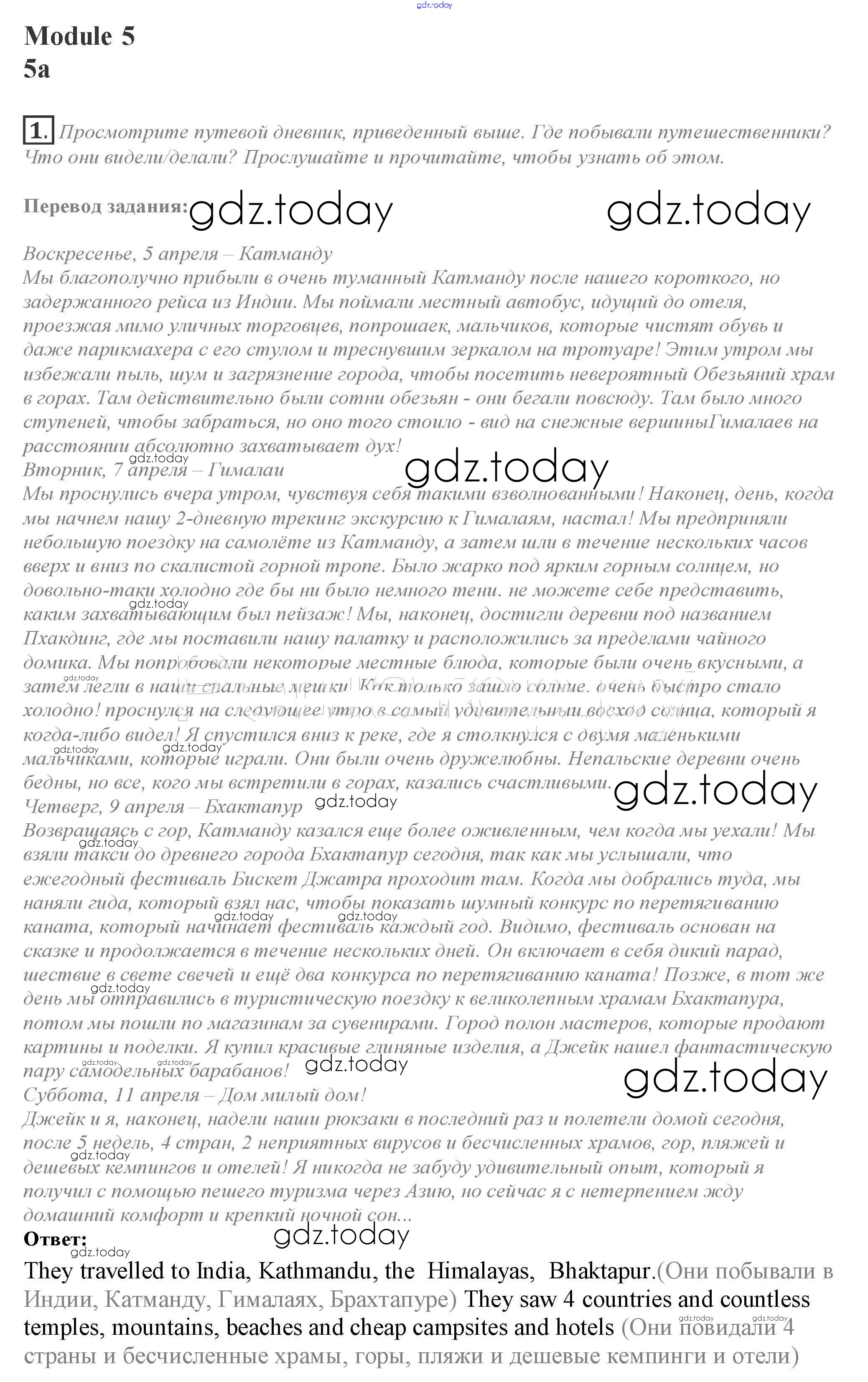 На страницах сайта gdz.today вы найдете учебный и вспомогательный материал, направленный на улучшения знаний школьной программы. ГДЗ - онлайн мир знаний Часть 5a Решение к Module 5 1 Учебнику по Английскому языку для 10 класса Афанасьева, Дули Просвещение Spotlight 2015