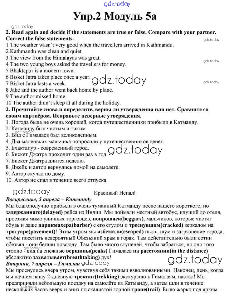 На страницах сайта gdz.today вы найдете учебный и вспомогательный материал, направленный на улучшения знаний школьной программы. ГДЗ - онлайн мир знаний Часть 5a Решение к Module 5 2 Учебнику по Английскому языку для 10 класса Афанасьева, Дули Просвещение Spotlight 2015