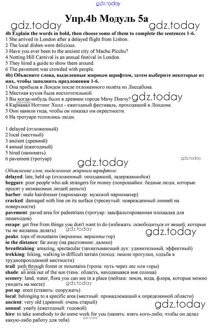 На страницах сайта gdz.today вы найдете учебный и вспомогательный материал, направленный на улучшения знаний школьной программы. ГДЗ - онлайн мир знаний Часть 5a Решение к Module 5 4b Учебнику по Английскому языку для 10 класса Афанасьева, Дули Просвещение Spotlight 2015