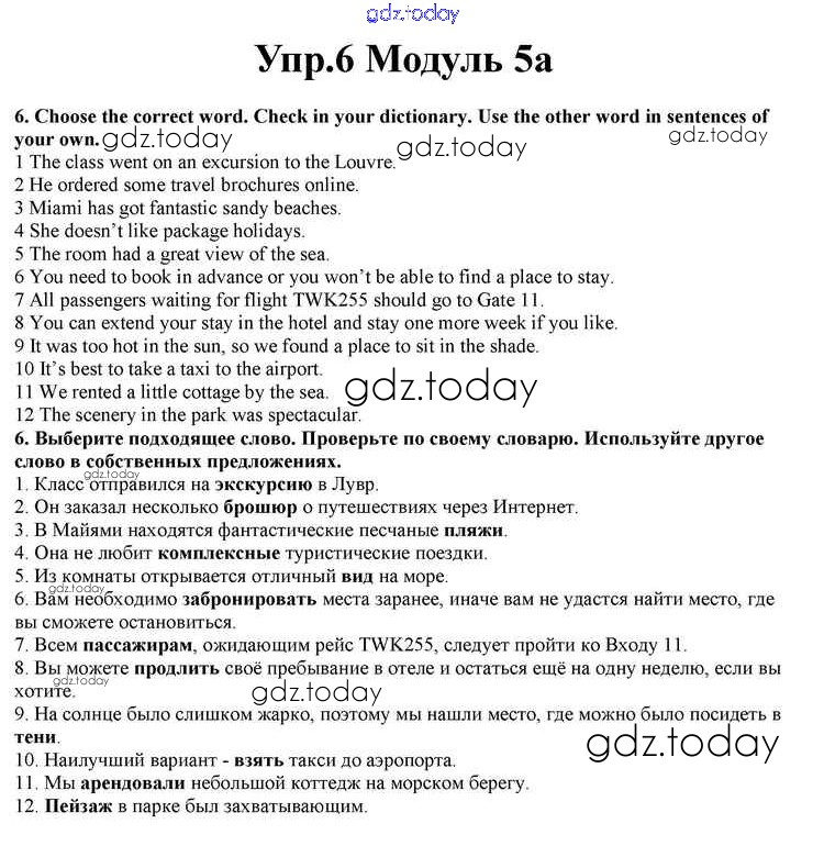 На страницах сайта gdz.today вы найдете учебный и вспомогательный материал, направленный на улучшения знаний школьной программы. ГДЗ - онлайн мир знаний Часть 5a Решение к Module 5 6 Учебнику по Английскому языку для 10 класса Афанасьева, Дули Просвещение Spotlight 2015