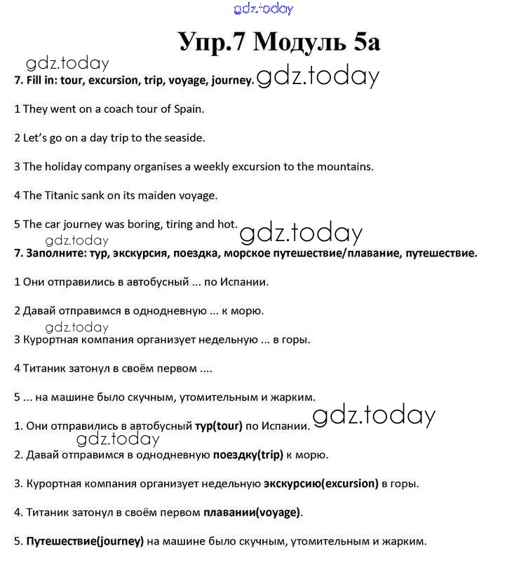 На страницах сайта gdz.today вы найдете учебный и вспомогательный материал, направленный на улучшения знаний школьной программы. ГДЗ - онлайн мир знаний Часть 5a Решение к Module 5 7 Учебнику по Английскому языку для 10 класса Афанасьева, Дули Просвещение Spotlight 2015