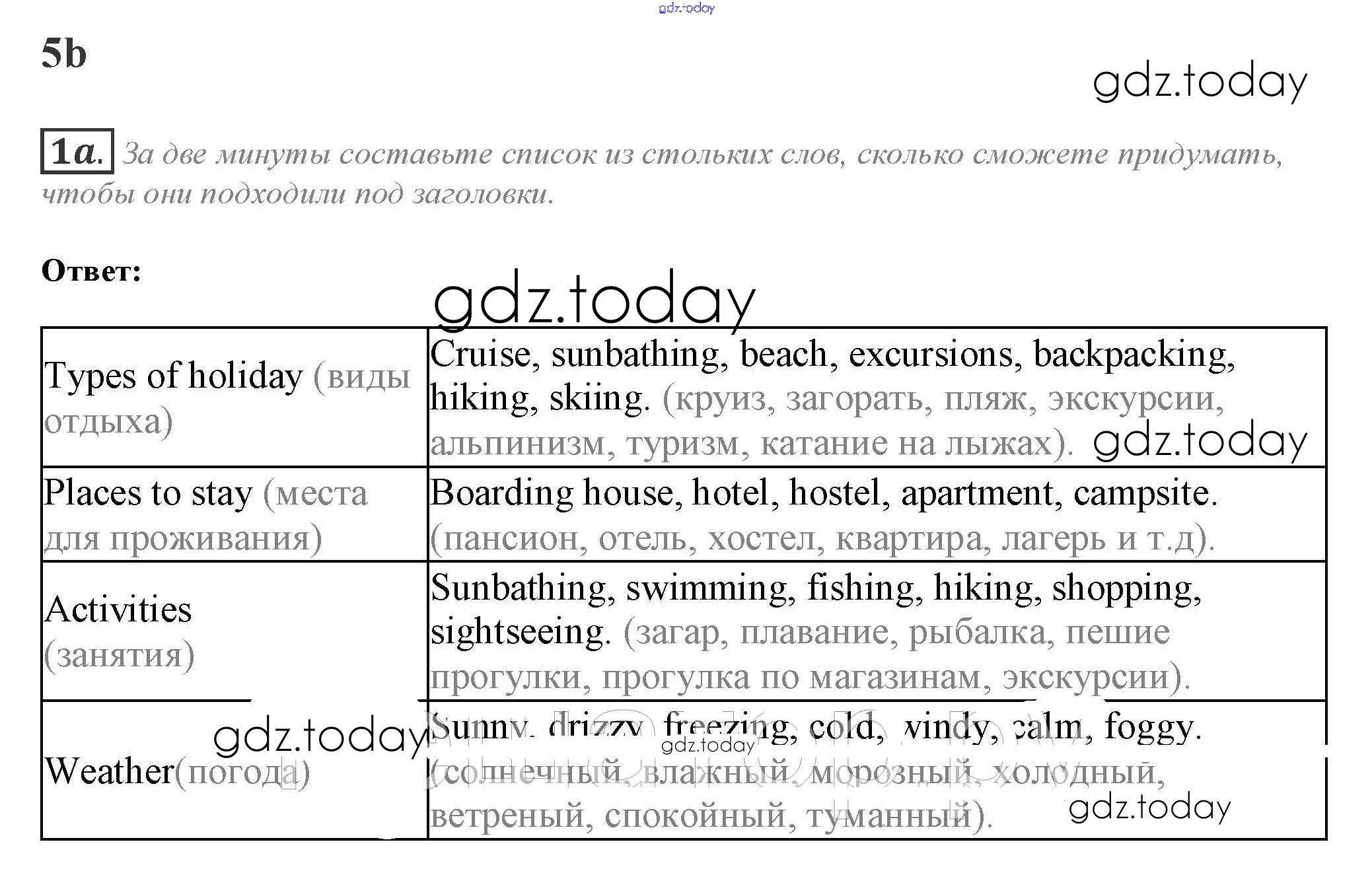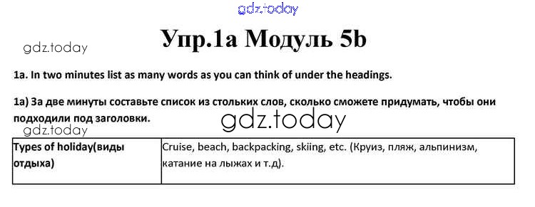 На страницах сайта gdz.today вы найдете учебный и вспомогательный материал, направленный на улучшения знаний школьной программы. ГДЗ - онлайн мир знаний Часть 5b Решение к Module 5 1a Учебнику по Английскому языку для 10 класса Афанасьева, Дули Просвещение Spotlight 2015