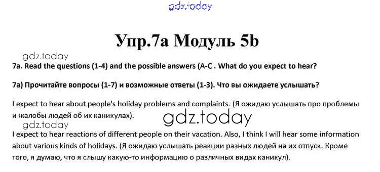 На страницах сайта gdz.today вы найдете учебный и вспомогательный материал, направленный на улучшения знаний школьной программы. ГДЗ - онлайн мир знаний Часть 5b Решение к Module 5 7a Учебнику по Английскому языку для 10 класса Афанасьева, Дули Просвещение Spotlight 2015
