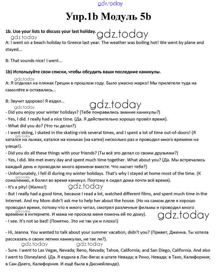 На страницах сайта gdz.today вы найдете учебный и вспомогательный материал, направленный на улучшения знаний школьной программы. ГДЗ - онлайн мир знаний Часть 5b Решение к Module 5 1b Учебнику по Английскому языку для 10 класса Афанасьева, Дули Просвещение Spotlight 2015