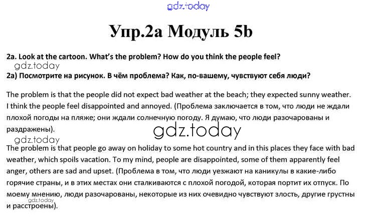 На страницах сайта gdz.today вы найдете учебный и вспомогательный материал, направленный на улучшения знаний школьной программы. ГДЗ - онлайн мир знаний Часть 5b Решение к Module 5 2a Учебнику по Английскому языку для 10 класса Афанасьева, Дули Просвещение Spotlight 2015