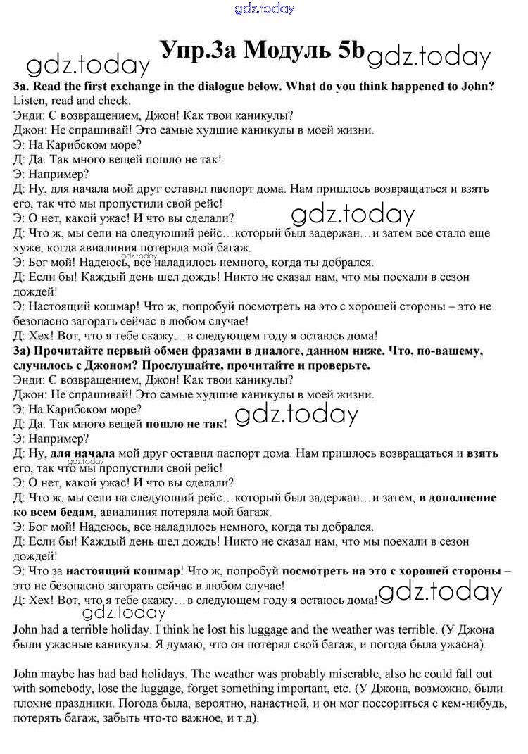 На страницах сайта gdz.today вы найдете учебный и вспомогательный материал, направленный на улучшения знаний школьной программы. ГДЗ - онлайн мир знаний Часть 5b Решение к Module 5 3a Учебнику по Английскому языку для 10 класса Афанасьева, Дули Просвещение Spotlight 2015