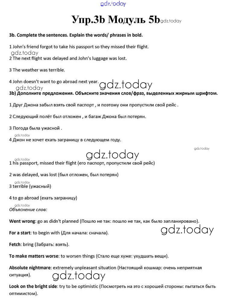 На страницах сайта gdz.today вы найдете учебный и вспомогательный материал, направленный на улучшения знаний школьной программы. ГДЗ - онлайн мир знаний Часть 5b Решение к Module 5 3b Учебнику по Английскому языку для 10 класса Афанасьева, Дули Просвещение Spotlight 2015