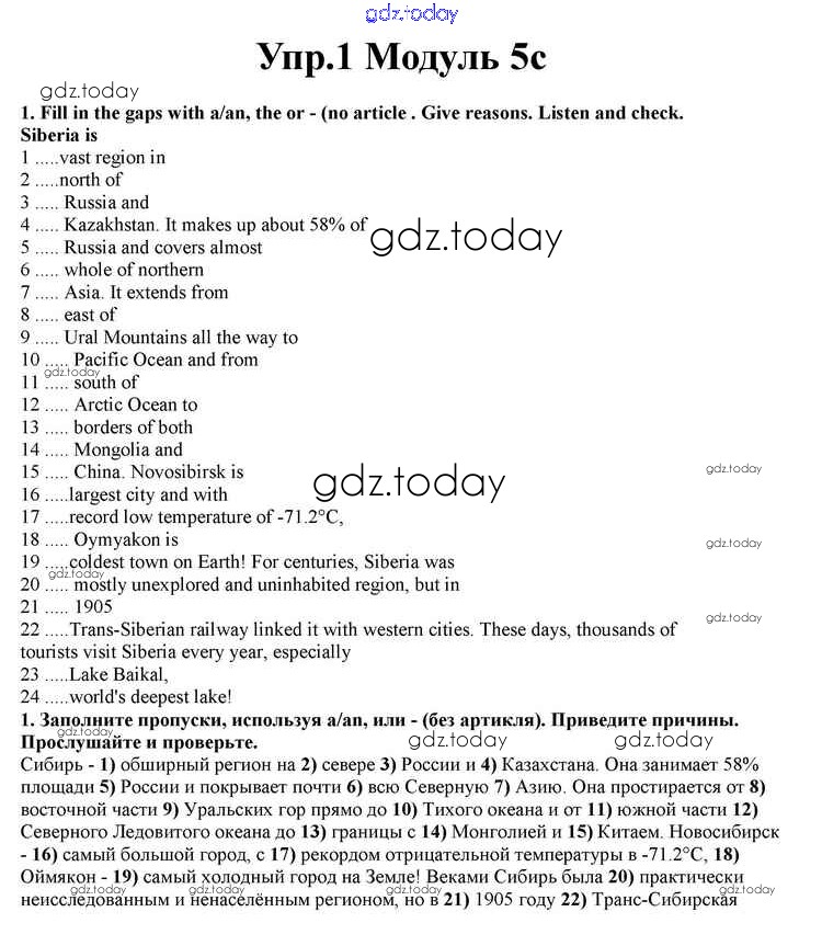 На страницах сайта gdz.today вы найдете учебный и вспомогательный материал, направленный на улучшения знаний школьной программы. ГДЗ - онлайн мир знаний Часть 5c Решение к Module 5 1 Учебнику по Английскому языку для 10 класса Афанасьева, Дули Просвещение Spotlight 2015