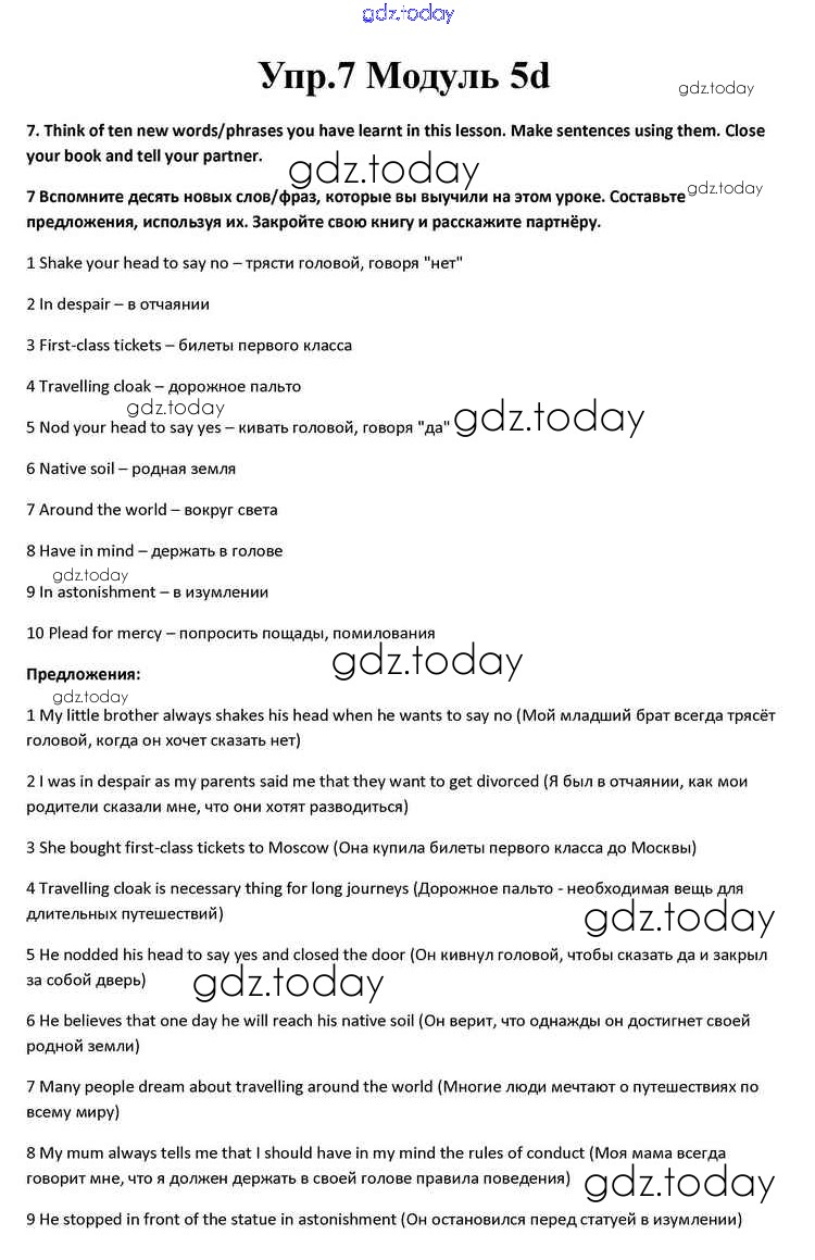 На страницах сайта gdz.today вы найдете учебный и вспомогательный материал, направленный на улучшения знаний школьной программы. ГДЗ - онлайн мир знаний Часть 5d Решение к Module 5 7 Учебнику по Английскому языку для 10 класса Афанасьева, Дули Просвещение Spotlight 2015