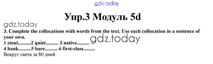На страницах сайта gdz.today вы найдете учебный и вспомогательный материал, направленный на улучшения знаний школьной программы. ГДЗ - онлайн мир знаний Часть 5d Решение к Module 5 3 Учебнику по Английскому языку для 10 класса Афанасьева, Дули Просвещение Spotlight 2015