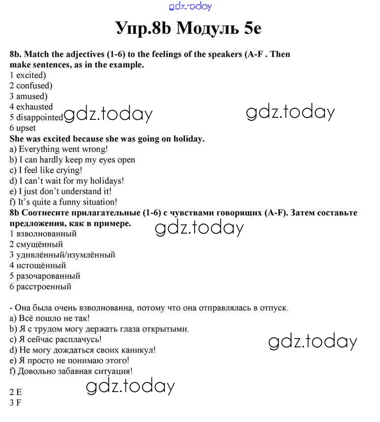 На страницах сайта gdz.today вы найдете учебный и вспомогательный материал, направленный на улучшения знаний школьной программы. ГДЗ - онлайн мир знаний Часть 5e Решение к Module 5 8b Учебнику по Английскому языку для 10 класса Афанасьева, Дули Просвещение Spotlight 2015