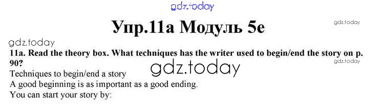 На страницах сайта gdz.today вы найдете учебный и вспомогательный материал, направленный на улучшения знаний школьной программы. ГДЗ - онлайн мир знаний Часть 5e Решение к Module 5 11a Учебнику по Английскому языку для 10 класса Афанасьева, Дули Просвещение Spotlight 2015