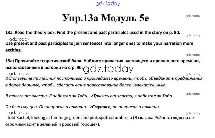 На страницах сайта gdz.today вы найдете учебный и вспомогательный материал, направленный на улучшения знаний школьной программы. ГДЗ - онлайн мир знаний Часть 5e Решение к Module 5 13a Учебнику по Английскому языку для 10 класса Афанасьева, Дули Просвещение Spotlight 2015
