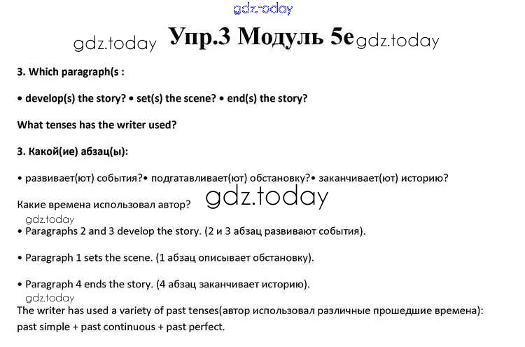 На страницах сайта gdz.today вы найдете учебный и вспомогательный материал, направленный на улучшения знаний школьной программы. ГДЗ - онлайн мир знаний Часть 5e Решение к Module 5 3 Учебнику по Английскому языку для 10 класса Афанасьева, Дули Просвещение Spotlight 2015