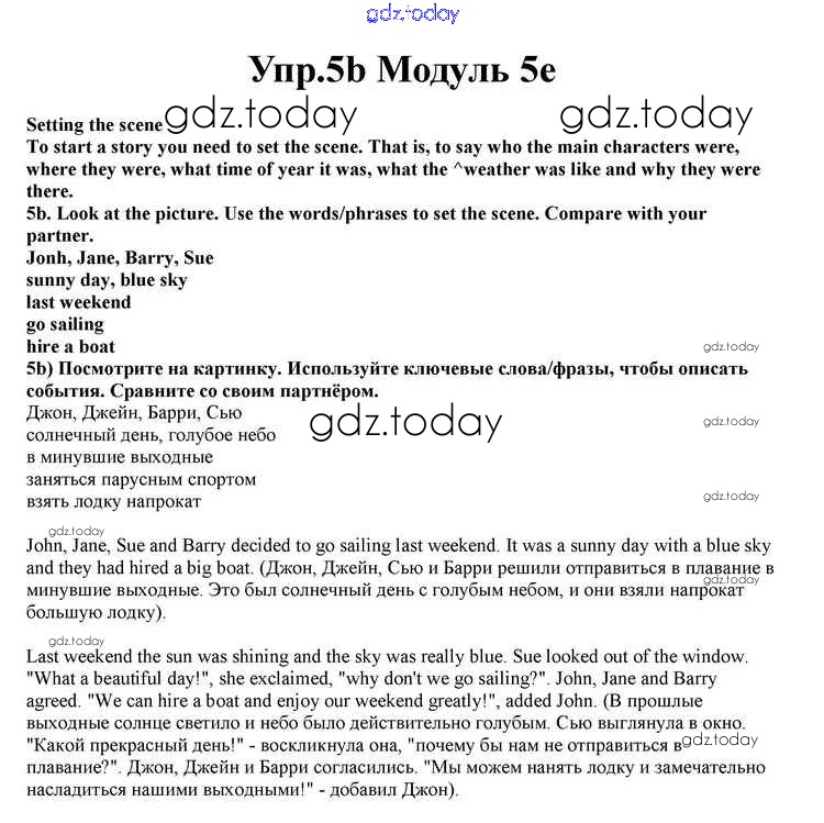 На страницах сайта gdz.today вы найдете учебный и вспомогательный материал, направленный на улучшения знаний школьной программы. ГДЗ - онлайн мир знаний Часть 5e Решение к Module 5 5b Учебнику по Английскому языку для 10 класса Афанасьева, Дули Просвещение Spotlight 2015