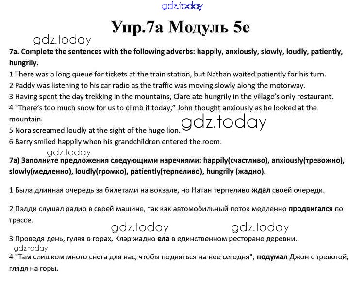На страницах сайта gdz.today вы найдете учебный и вспомогательный материал, направленный на улучшения знаний школьной программы. ГДЗ - онлайн мир знаний Часть 5e Решение к Module 5 7a Учебнику по Английскому языку для 10 класса Афанасьева, Дули Просвещение Spotlight 2015