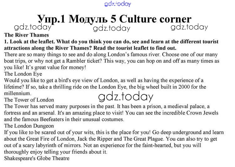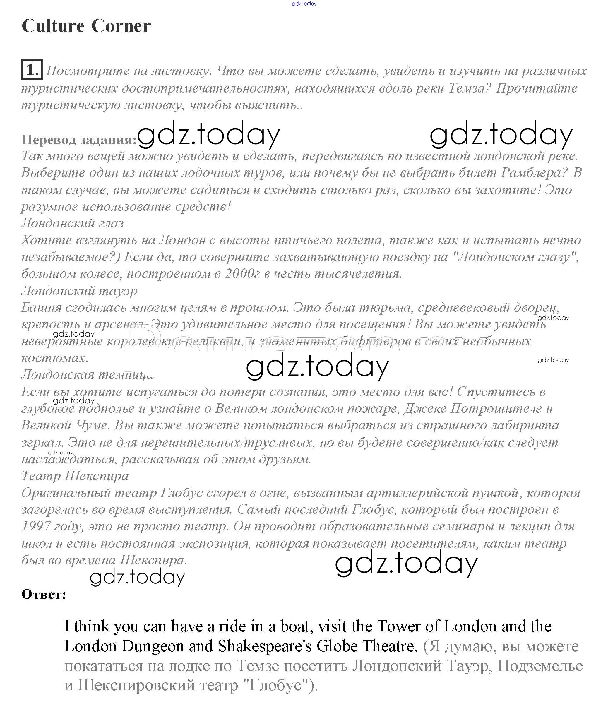 На страницах сайта gdz.today вы найдете учебный и вспомогательный материал, направленный на улучшения знаний школьной программы. ГДЗ - онлайн мир знаний Culture corner Решение к Module 5 1 Учебнику по Английскому языку для 10 класса Афанасьева, Дули Просвещение Spotlight 2015