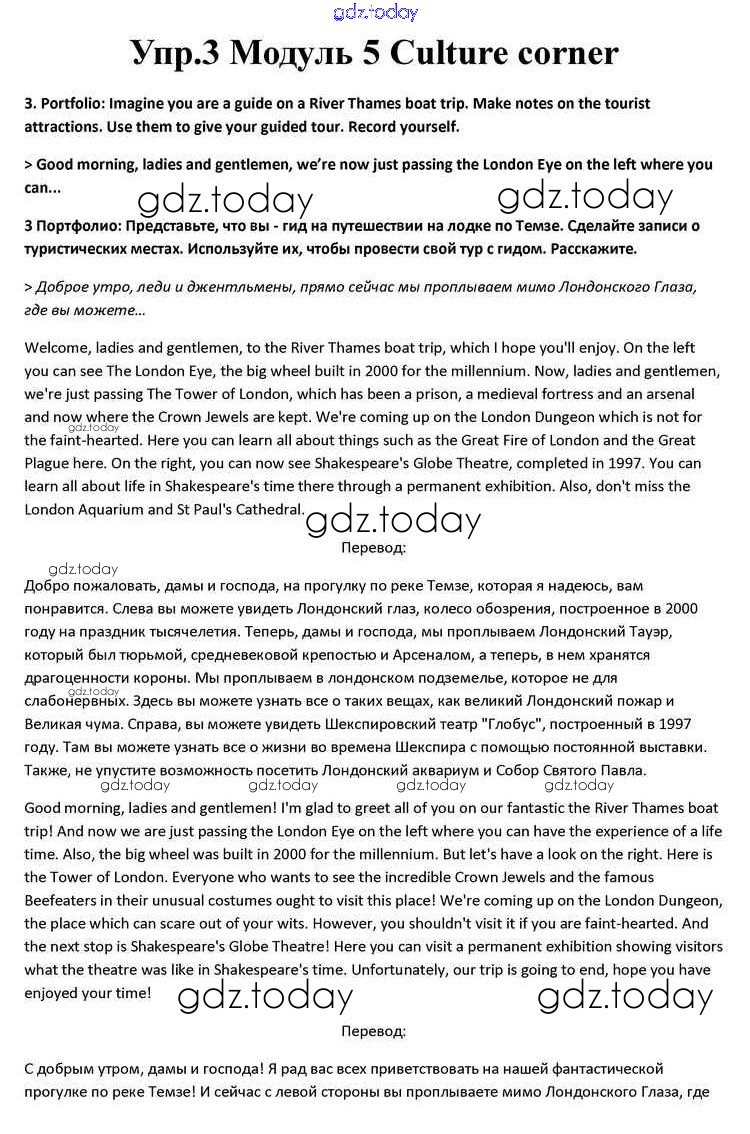На страницах сайта gdz.today вы найдете учебный и вспомогательный материал, направленный на улучшения знаний школьной программы. ГДЗ - онлайн мир знаний Culture corner Решение к Module 5 3 Учебнику по Английскому языку для 10 класса Афанасьева, Дули Просвещение Spotlight 2015