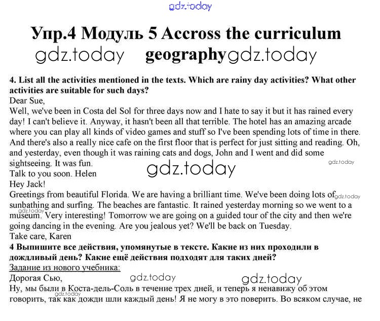 На страницах сайта gdz.today вы найдете учебный и вспомогательный материал, направленный на улучшения знаний школьной программы. ГДЗ - онлайн мир знаний Accross the curriculum Geography Решение к Module 5 4 Учебнику по Английскому языку для 10 класса Афанасьева, Дули Просвещение Spotlight 2015