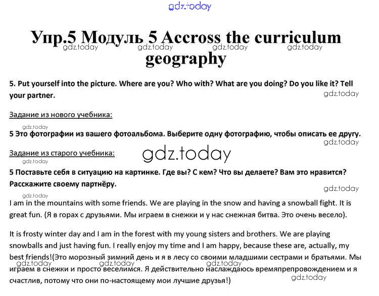 На страницах сайта gdz.today вы найдете учебный и вспомогательный материал, направленный на улучшения знаний школьной программы. ГДЗ - онлайн мир знаний Accross the curriculum Geography Решение к Module 5 5 Учебнику по Английскому языку для 10 класса Афанасьева, Дули Просвещение Spotlight 2015