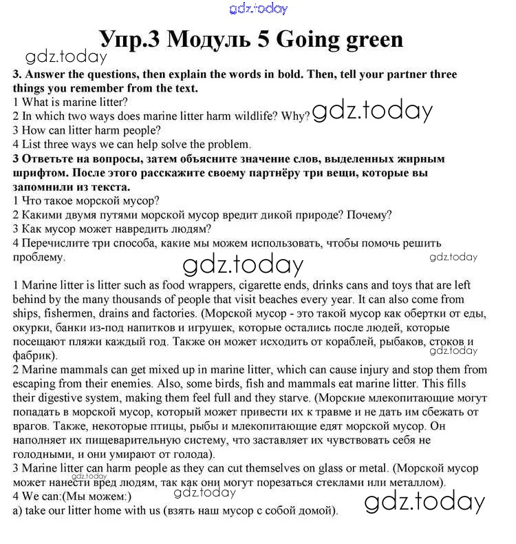 На страницах сайта gdz.today вы найдете учебный и вспомогательный материал, направленный на улучшения знаний школьной программы. ГДЗ - онлайн мир знаний Going green Решение к Module 5 3 Учебнику по Английскому языку для 10 класса Афанасьева, Дули Просвещение Spotlight 2015