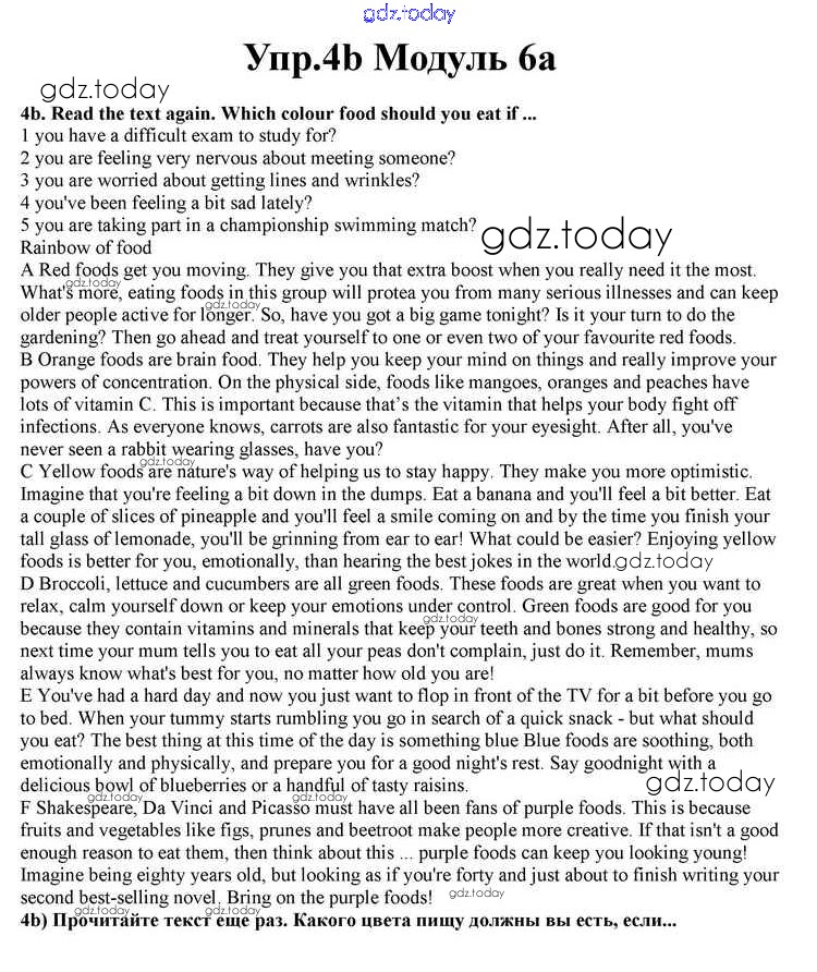 На страницах сайта gdz.today вы найдете учебный и вспомогательный материал, направленный на улучшения знаний школьной программы. ГДЗ - онлайн мир знаний Часть 6a Решение к Module 6 4b Учебнику по Английскому языку для 10 класса Афанасьева, Дули Просвещение Spotlight 2015