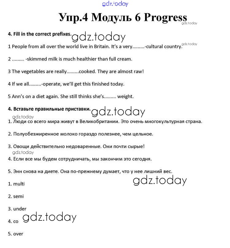 На страницах сайта gdz.today вы найдете учебный и вспомогательный материал, направленный на улучшения знаний школьной программы. ГДЗ - онлайн мир знаний Progress Check Решение к Module 6 4 Учебнику по Английскому языку для 10 класса Афанасьева, Дули Просвещение Spotlight 2015