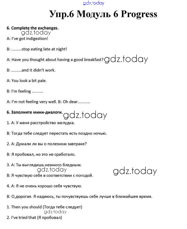 На страницах сайта gdz.today вы найдете учебный и вспомогательный материал, направленный на улучшения знаний школьной программы. ГДЗ - онлайн мир знаний Progress Check Решение к Module 6 6 Учебнику по Английскому языку для 10 класса Афанасьева, Дули Просвещение Spotlight 2015