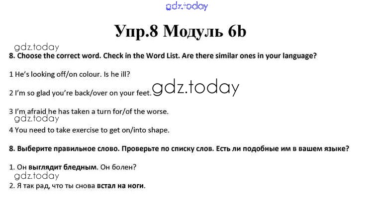 На страницах сайта gdz.today вы найдете учебный и вспомогательный материал, направленный на улучшения знаний школьной программы. ГДЗ - онлайн мир знаний Часть 6b Решение к Module 6 8 Учебнику по Английскому языку для 10 класса Афанасьева, Дули Просвещение Spotlight 2015