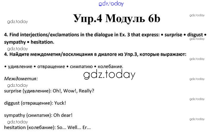 На страницах сайта gdz.today вы найдете учебный и вспомогательный материал, направленный на улучшения знаний школьной программы. ГДЗ - онлайн мир знаний Часть 6b Решение к Module 6 4 Учебнику по Английскому языку для 10 класса Афанасьева, Дули Просвещение Spotlight 2015