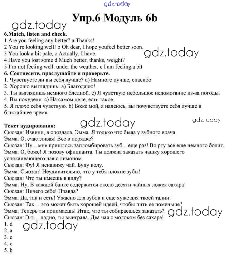 На страницах сайта gdz.today вы найдете учебный и вспомогательный материал, направленный на улучшения знаний школьной программы. ГДЗ - онлайн мир знаний Часть 6b Решение к Module 6 6 Учебнику по Английскому языку для 10 класса Афанасьева, Дули Просвещение Spotlight 2015