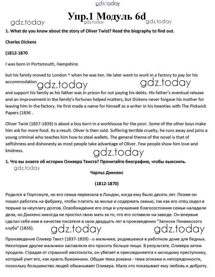 На страницах сайта gdz.today вы найдете учебный и вспомогательный материал, направленный на улучшения знаний школьной программы. ГДЗ - онлайн мир знаний Часть 6d Решение к Module 6 1 Учебнику по Английскому языку для 10 класса Афанасьева, Дули Просвещение Spotlight 2015