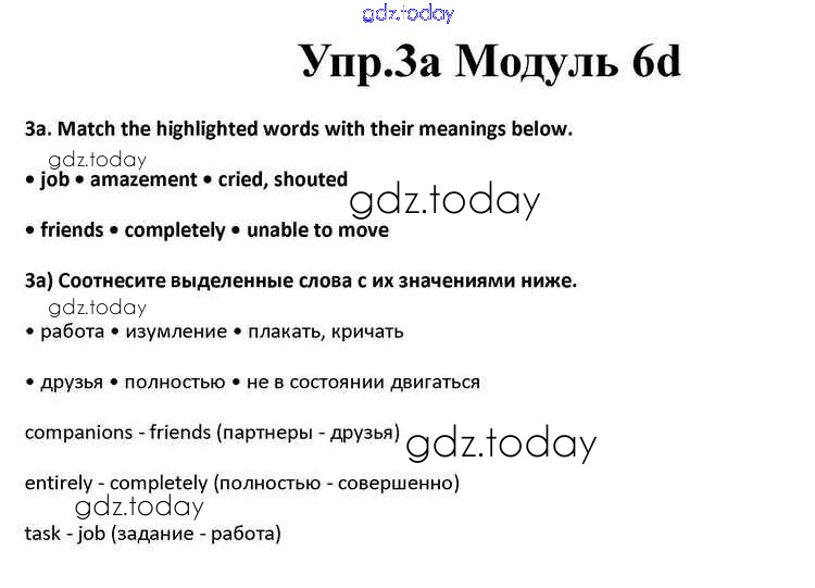 На страницах сайта gdz.today вы найдете учебный и вспомогательный материал, направленный на улучшения знаний школьной программы. ГДЗ - онлайн мир знаний Часть 6d Решение к Module 6 3a Учебнику по Английскому языку для 10 класса Афанасьева, Дули Просвещение Spotlight 2015