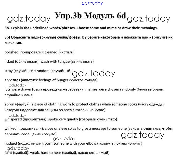 На страницах сайта gdz.today вы найдете учебный и вспомогательный материал, направленный на улучшения знаний школьной программы. ГДЗ - онлайн мир знаний Часть 6d Решение к Module 6 3b Учебнику по Английскому языку для 10 класса Афанасьева, Дули Просвещение Spotlight 2015