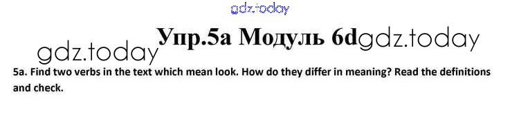 На страницах сайта gdz.today вы найдете учебный и вспомогательный материал, направленный на улучшения знаний школьной программы. ГДЗ - онлайн мир знаний Часть 6d Решение к Module 6 5a Учебнику по Английскому языку для 10 класса Афанасьева, Дули Просвещение Spotlight 2015