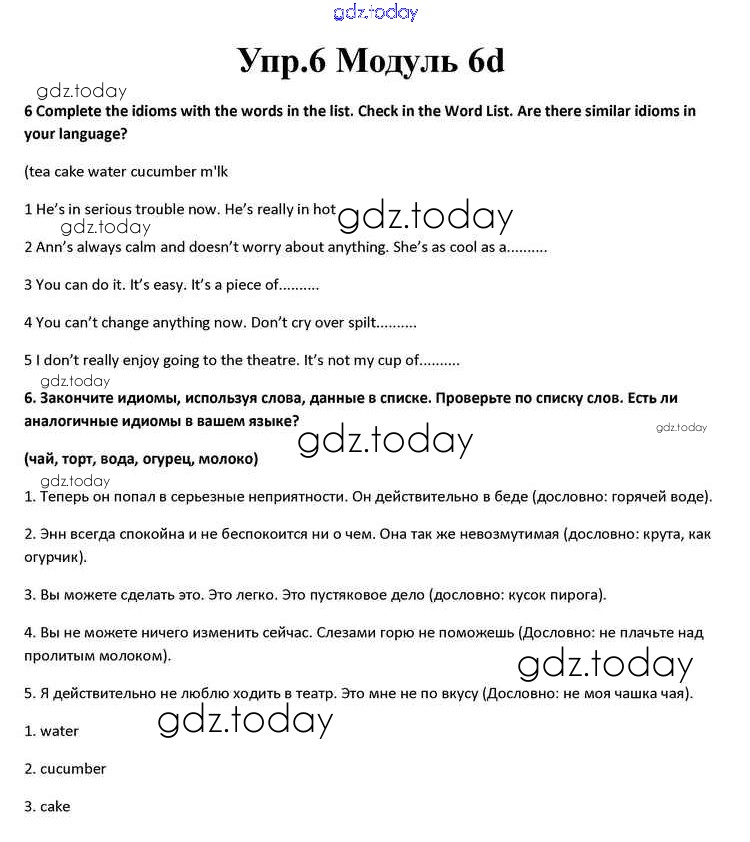 На страницах сайта gdz.today вы найдете учебный и вспомогательный материал, направленный на улучшения знаний школьной программы. ГДЗ - онлайн мир знаний Часть 6d Решение к Module 6 6 Учебнику по Английскому языку для 10 класса Афанасьева, Дули Просвещение Spotlight 2015