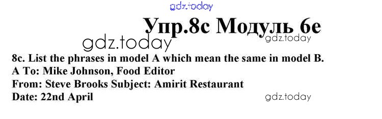 На страницах сайта gdz.today вы найдете учебный и вспомогательный материал, направленный на улучшения знаний школьной программы. ГДЗ - онлайн мир знаний Часть 6e Решение к Module 6 8c Учебнику по Английскому языку для 10 класса Афанасьева, Дули Просвещение Spotlight 2015