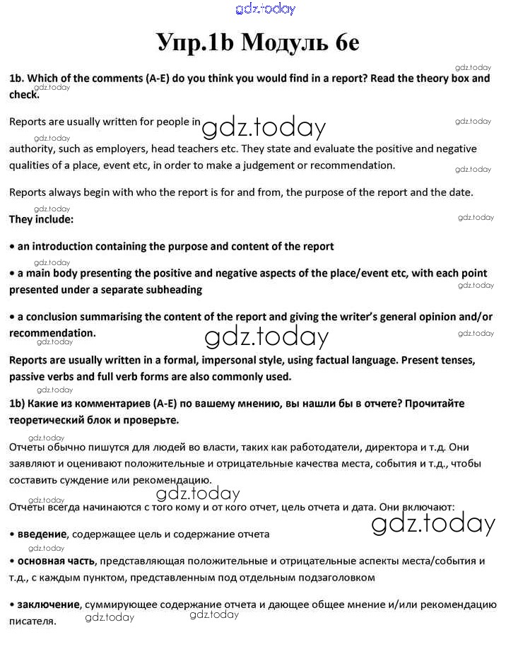 На страницах сайта gdz.today вы найдете учебный и вспомогательный материал, направленный на улучшения знаний школьной программы. ГДЗ - онлайн мир знаний Часть 6e Решение к Module 6 1b Учебнику по Английскому языку для 10 класса Афанасьева, Дули Просвещение Spotlight 2015