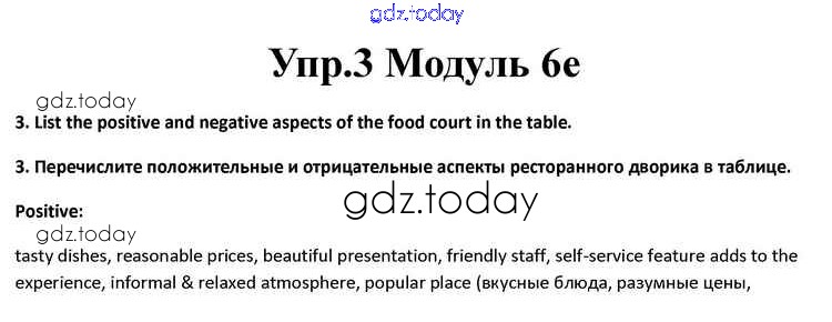 На страницах сайта gdz.today вы найдете учебный и вспомогательный материал, направленный на улучшения знаний школьной программы. ГДЗ - онлайн мир знаний Часть 6e Решение к Module 6 3 Учебнику по Английскому языку для 10 класса Афанасьева, Дули Просвещение Spotlight 2015