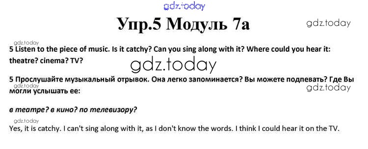 На страницах сайта gdz.today вы найдете учебный и вспомогательный материал, направленный на улучшения знаний школьной программы. ГДЗ - онлайн мир знаний Часть 7a Решение к Module 7 5 Учебнику по Английскому языку для 10 класса Афанасьева, Дули Просвещение Spotlight 2015