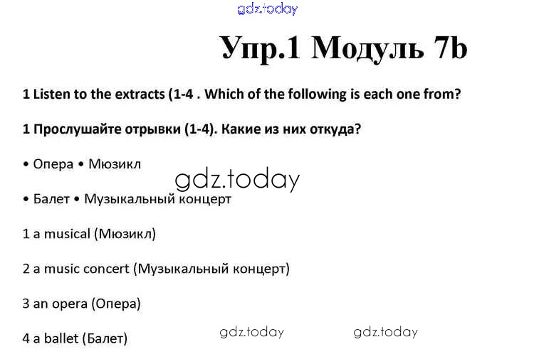 На страницах сайта gdz.today вы найдете учебный и вспомогательный материал, направленный на улучшения знаний школьной программы. ГДЗ - онлайн мир знаний Часть 7b Решение к Module 7 1 Учебнику по Английскому языку для 10 класса Афанасьева, Дули Просвещение Spotlight 2015
