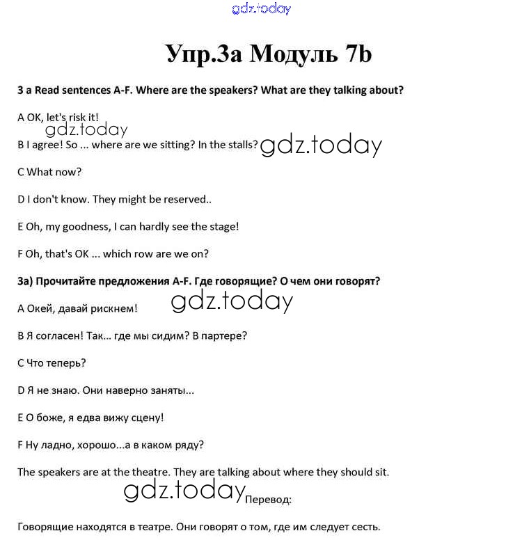 На страницах сайта gdz.today вы найдете учебный и вспомогательный материал, направленный на улучшения знаний школьной программы. ГДЗ - онлайн мир знаний Часть 7b Решение к Module 7 3a Учебнику по Английскому языку для 10 класса Афанасьева, Дули Просвещение Spotlight 2015