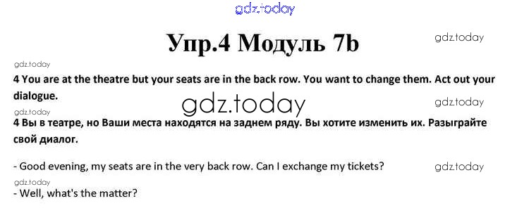 На страницах сайта gdz.today вы найдете учебный и вспомогательный материал, направленный на улучшения знаний школьной программы. ГДЗ - онлайн мир знаний Часть 7b Решение к Module 7 4 Учебнику по Английскому языку для 10 класса Афанасьева, Дули Просвещение Spotlight 2015