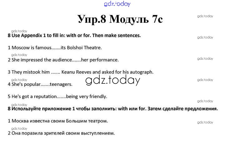 На страницах сайта gdz.today вы найдете учебный и вспомогательный материал, направленный на улучшения знаний школьной программы. ГДЗ - онлайн мир знаний Часть 7c Решение к Module 7 8 Учебнику по Английскому языку для 10 класса Афанасьева, Дули Просвещение Spotlight 2015