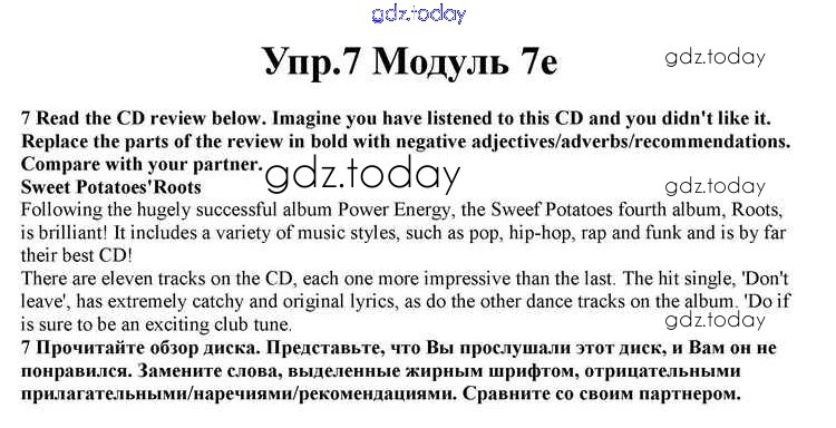 На страницах сайта gdz.today вы найдете учебный и вспомогательный материал, направленный на улучшения знаний школьной программы. ГДЗ - онлайн мир знаний Часть 7e Решение к Module 7 7 Учебнику по Английскому языку для 10 класса Афанасьева, Дули Просвещение Spotlight 2015