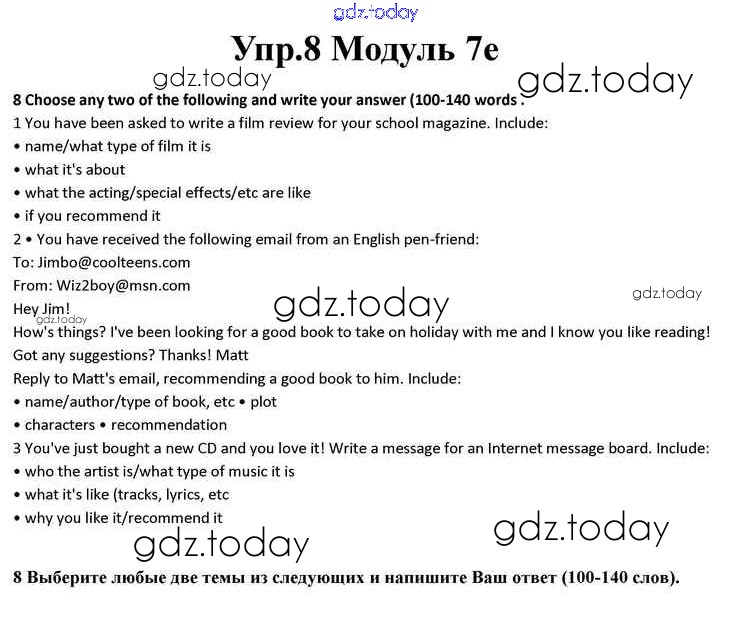На страницах сайта gdz.today вы найдете учебный и вспомогательный материал, направленный на улучшения знаний школьной программы. ГДЗ - онлайн мир знаний Часть 7e Решение к Module 7 8 Учебнику по Английскому языку для 10 класса Афанасьева, Дули Просвещение Spotlight 2015